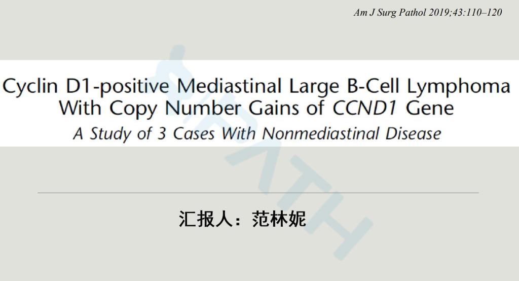 CyclinD1阳性的纵膈大B细胞淋巴瘤具有CCND1基因的拷贝数增加范