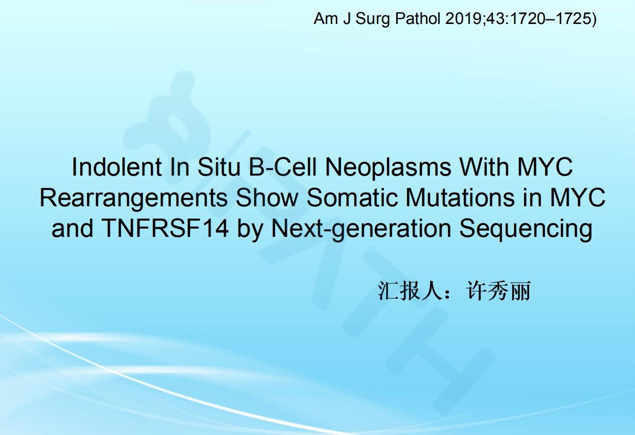 惰性原位B细胞肿瘤伴MYC重排通过二代测序显示MYC和NFRSF14体细