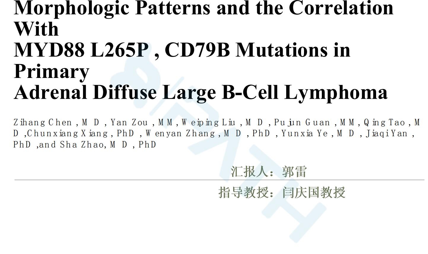 伴有MYD88L265P,CD79B突变的原发肾上腺弥漫大B细胞淋巴瘤的