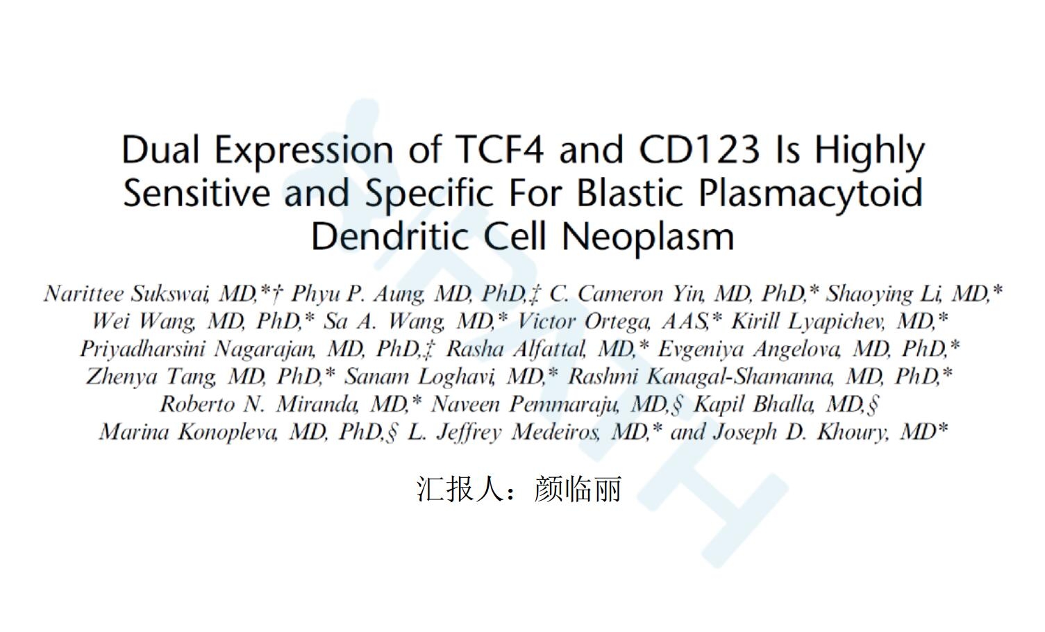 TCF4和CD123的双表达对母细胞性浆细胞样树突状细胞肿瘤高度敏感性和
