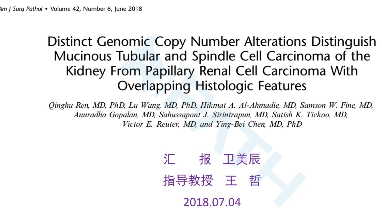 不同的基因拷贝数改变,可以区分与乳头状肾细胞癌有重合形态的黏液小管梭形细