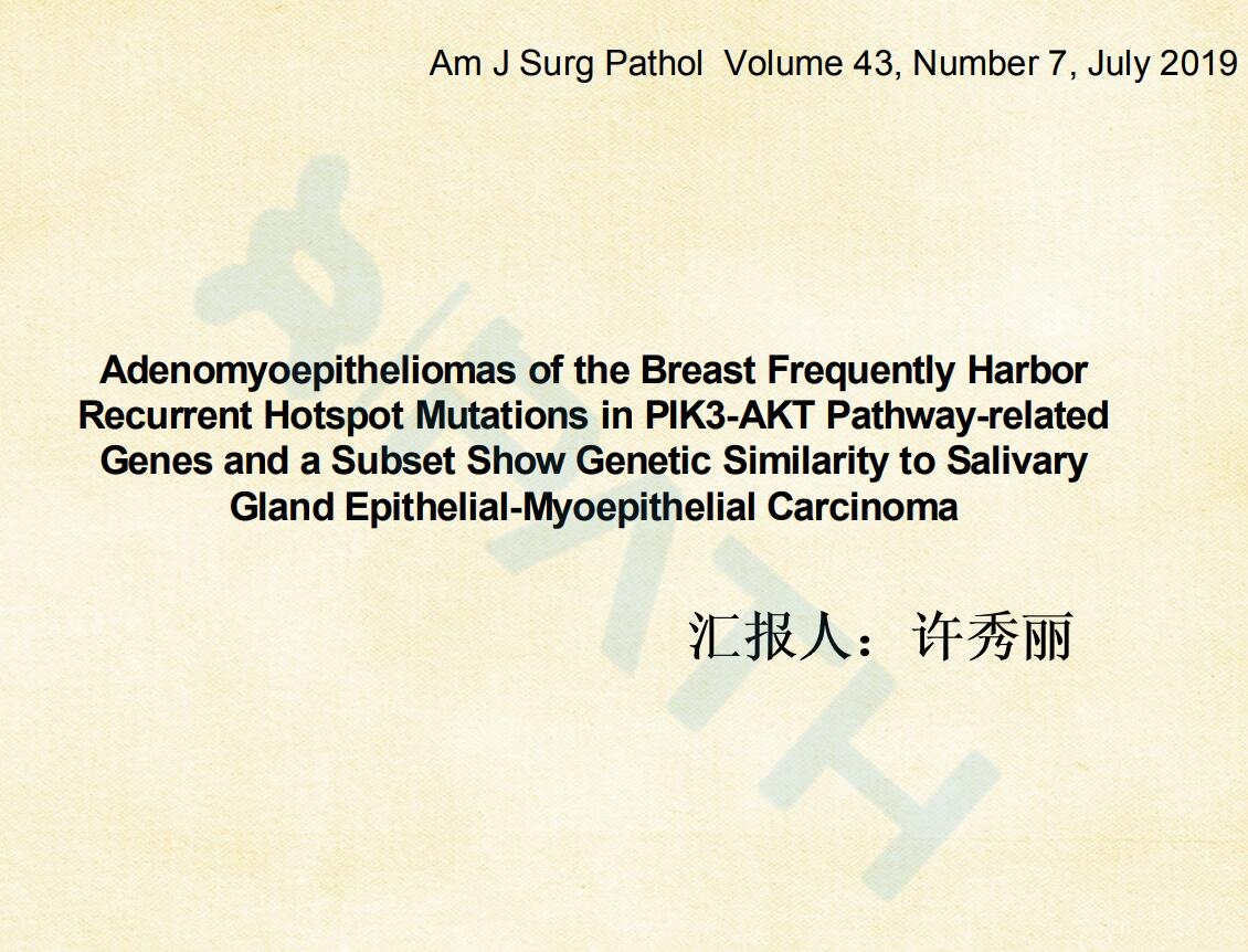 乳腺的腺肌上皮瘤在PIK3-AKT通路相关的基因中会发生热点突变且其中一