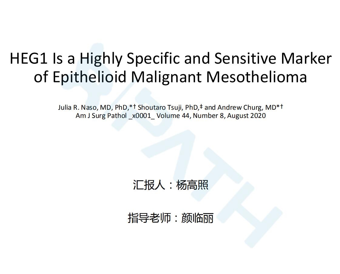 HEG1是上皮样恶性间皮瘤的高度特异性和敏感性标记物