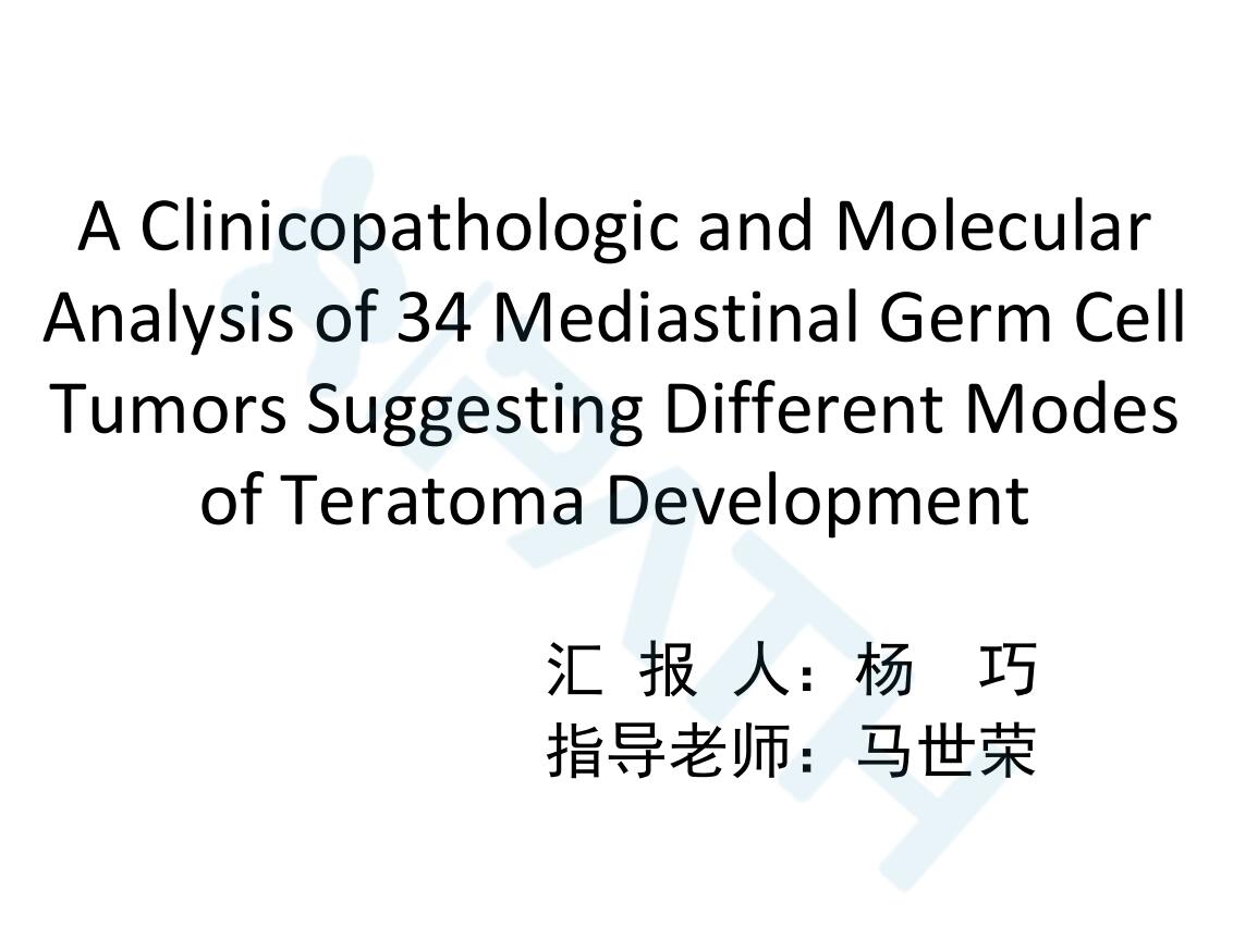 34例纵隔生殖细胞肿瘤的临床病理和分子分析提示畸胎瘤的发生存着不同形式