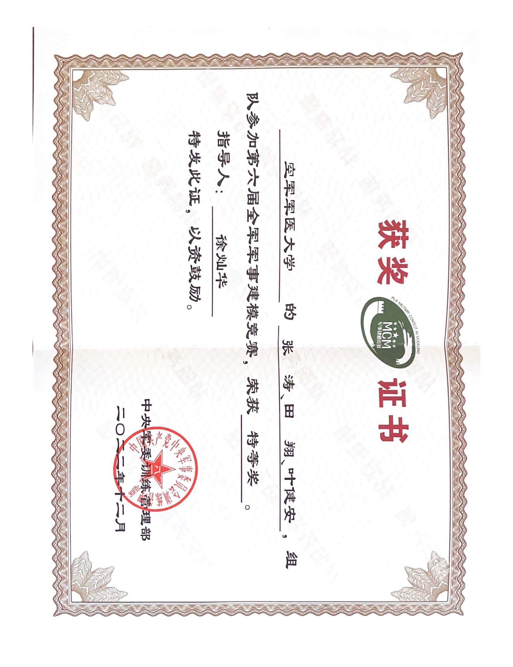 全军军事建模特等奖