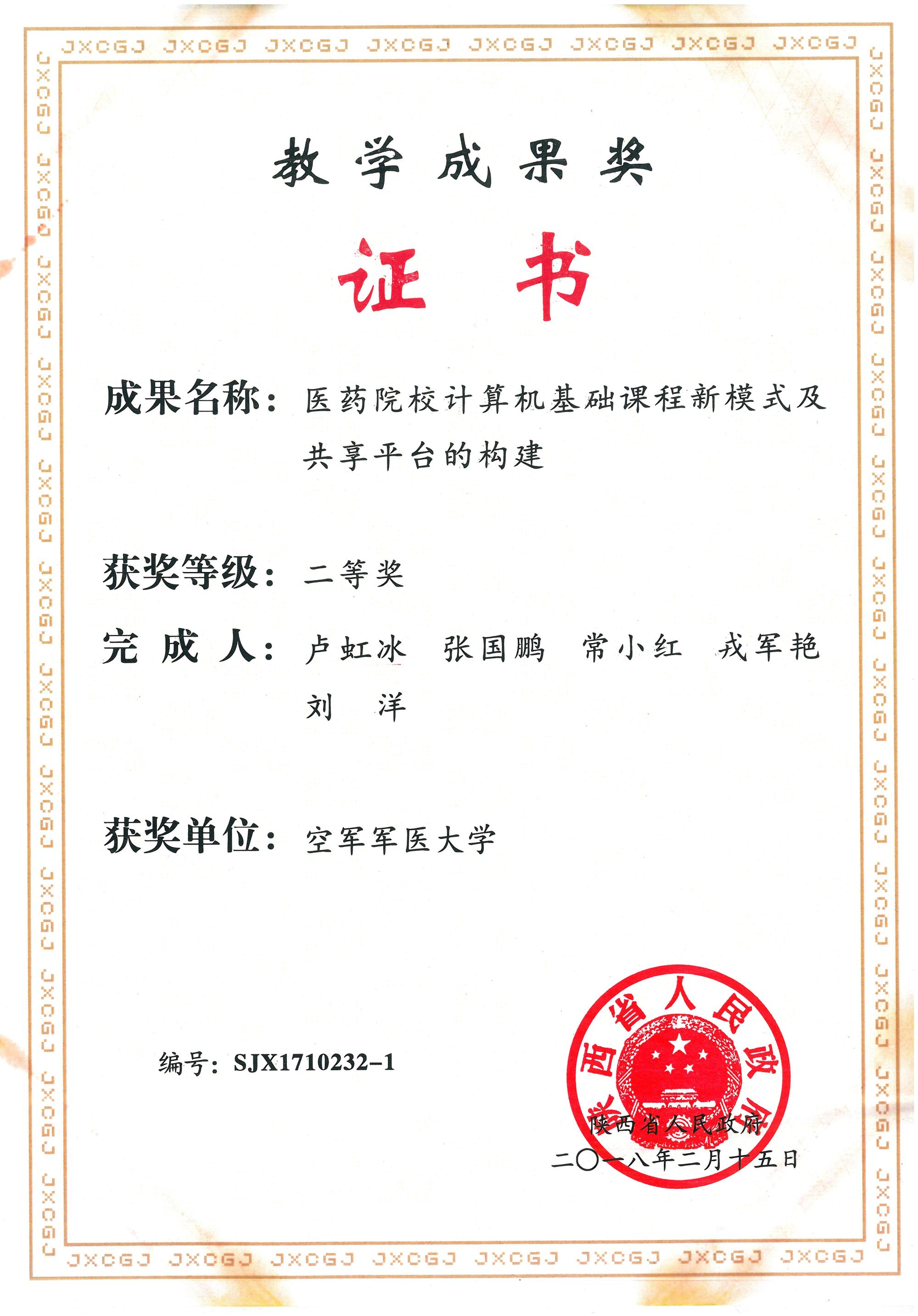 陕西省教学成果二等奖
