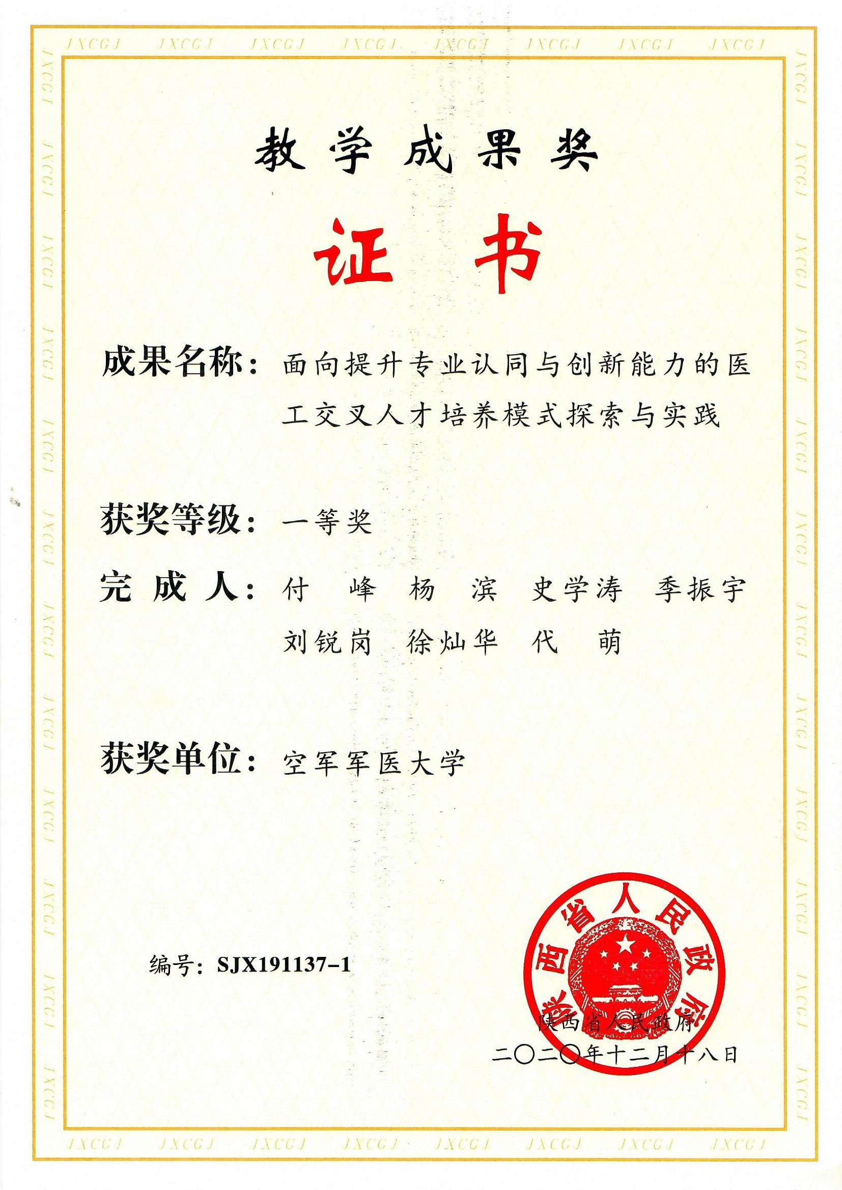 陕西省教学成果一等奖