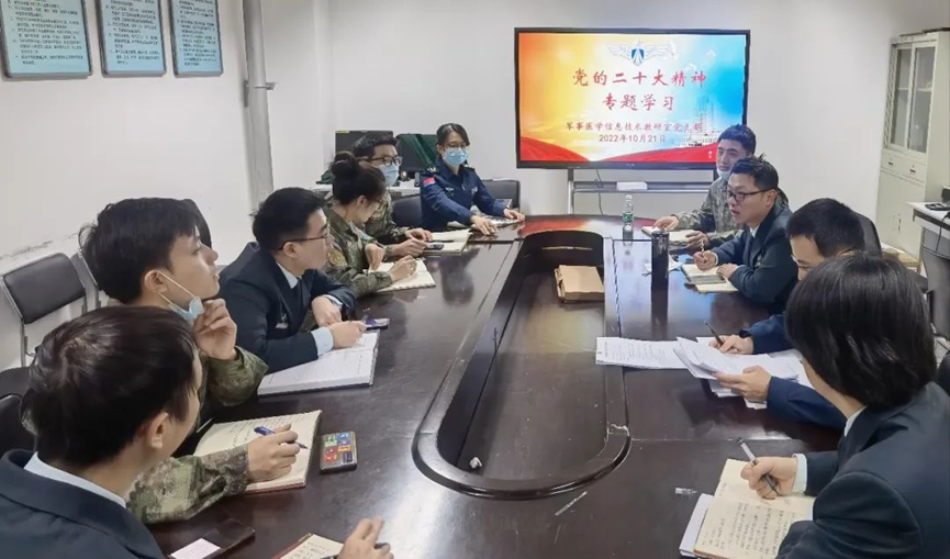 高举伟大旗帜,凝聚奋进力量。军事生物医学工程学系党委围绕学习党的二十大精神,强化组织领导、创新方式方法、突出转化运用,通过领读串讲、集体研读、个人自学和讨论交流等方式,开展多种形式的促学活动,进一步统一思想、凝聚共识,掀起学习贯彻党的二十大精神热潮。