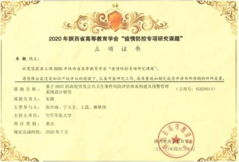 朱靓副教授主持的2020年陕西省高教学会教学研究课题《突发卫生公共事件风险评估体系》顺利结题。