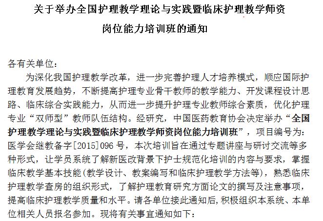 关于举办全国护理教学理论与实践暨临床护理教学师资岗位培训的通知