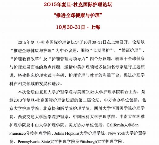 2015年复旦-杜克国际护理论坛“推进全球健康与护理”