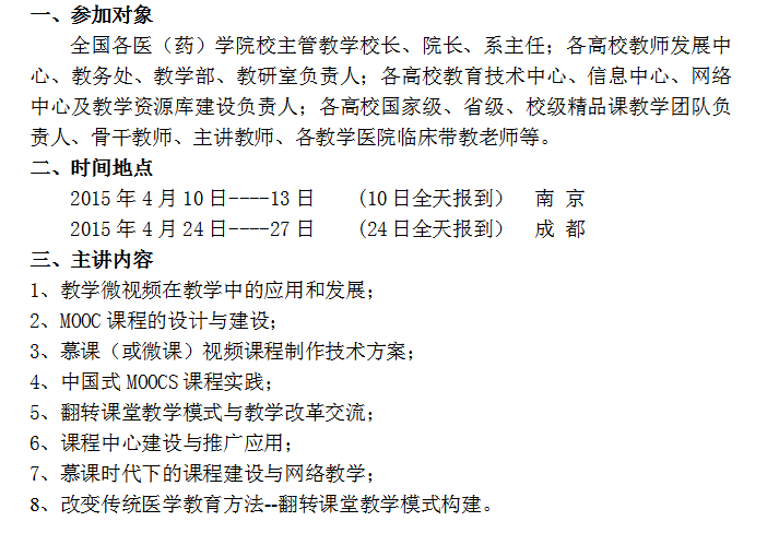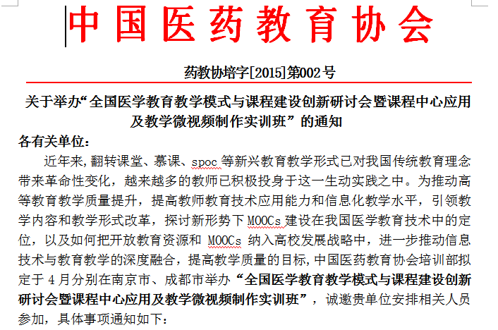 关于举办“全国医学教育教学模式与课程建设创新研讨会暨课程中心应用及教学微视频制作实训班”的通知