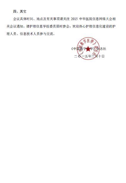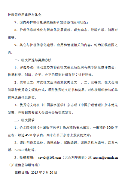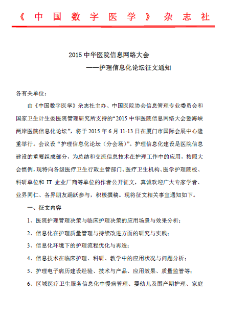 2015中华医学信息网络大会—护理信息化论坛征文通知