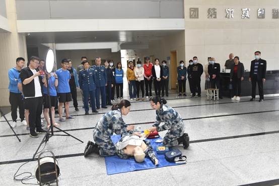 活动邀请了学校护理系史瑞洁、高丽教员进行现场演示教学,两位教员利用人体模型和AED除颤仪等设备,从理论知识和救护操作技能方面进行了详细讲授,并现场实操心肺复苏急救的救治流程和AED除颤仪的正确使用方法,强调了急救措施的注意事项和有关技能操作的动作要领。大家认真聆听,细心体会,积极参与模拟练习,现场学习氛围浓厚,培训达到了预期效果。