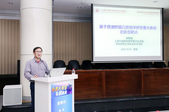 会上,廖鲁剑教授作了题为《基于质谱的蛋白质组学研发重大疾病的新型靶点》的专题报告。从创新引领、临床与基础研究并重两个方面给大家分享了蛋白质谱的多组学方法研发重大疾病的科研思路与方法。并以课题组多年研究成果帕金森病致病蛋白激酶PINK1调控神经元存活的新机制、恶性肿瘤早期诊断的生物标志物为例详细介绍了他的学术成果和科研经验。参会老师和研究生对廖教授的演讲积极提问,并作深入探讨和交流。