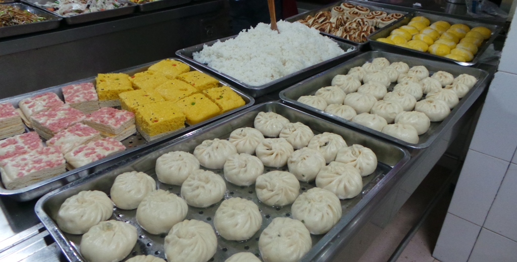 七号到九号档口为满足大部分学员需要经营自选餐,中午有20多个品种,包括各种肉菜、素菜和一元菜,主食品种丰富。