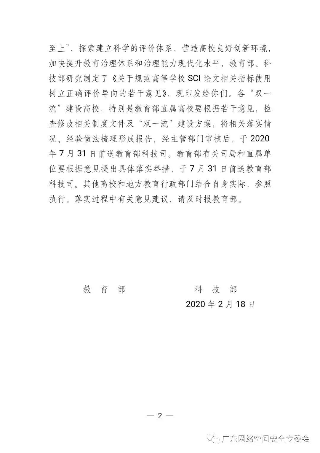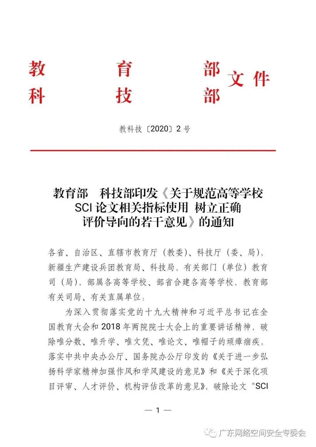 科研评价中存在的论文“SCI至上”的现象,已经对国内高等院校和科研院所的职称评审、人才引进、业绩奖酬,以及政府相关部门的人才称号评定、项目成果评审等工作带来严重影响。近日,科技部、教育部印发文件(教科技[2020]2号),要求规范SCI论文相关指标应用,树立正确的论文评价导向。以下全文转发教育部 科技部的文件。