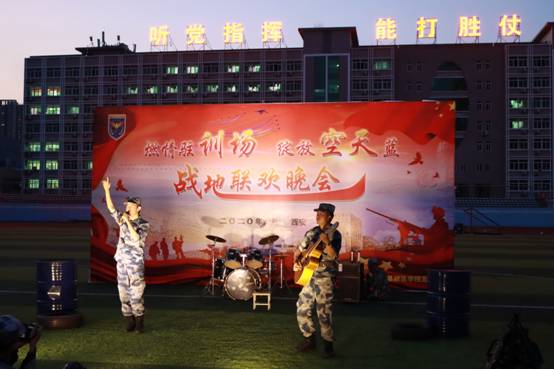 “一支钢枪手中握,一颗红心献祖国…”6月20日,beat365“卫勤-2020”在操场举办以“燃情驻训场、绽放空天蓝”为主题的战地文艺晚会,本次演习全体参训学员观看了演出