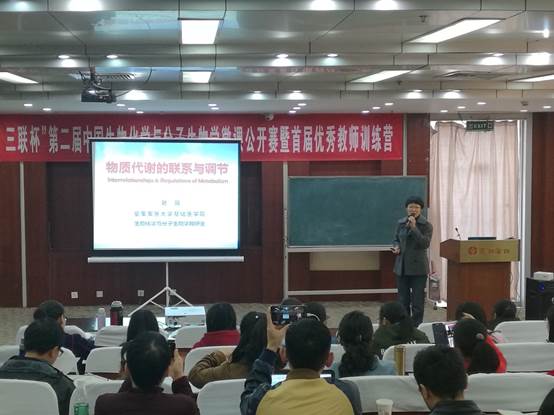 2017年10月27日至10月30日,由中国生物化学与分子生物学学会主办的第二届中国生物化学与分子生物学微课公开赛暨首届优秀教师培训营在山东省聊城大学举办,来自全国农、林、医、工、综合性大学,包括北大、复旦等一流名校在内的50所学校120余名生化教师参会参赛,我部赵晶教授作为青年教师代表,受邀进行了示范授课。原生化教研室主任药立波教授是本次活动的组委会主任和会议主席。