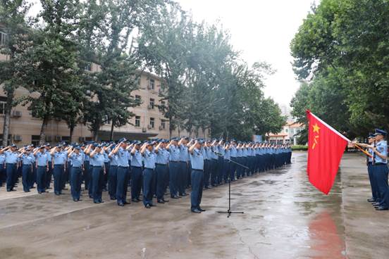 宣誓仪式由尹维宏院长主持,在嘹亮的军歌声中,迎军旗,随后全体学员宣誓,王湛伟副院长领誓。