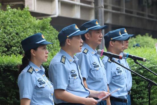 7月8日清晨,2019年毕业学员隆重集会在学员广场前,面向火红的八一军旗庄严宣誓。尹维宏院长、秦毓荣政委、王湛伟副院长以及机关处领导和学员三、四、六大队领导参加了宣誓大会,共同见证531名毕业学员向伟大祖国郑重承诺的光荣时刻。