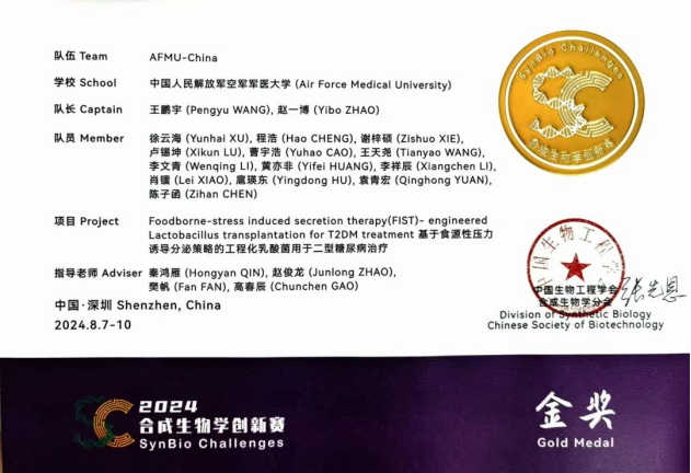近日,中国第三届合成生物学创新赛在深圳成功举办。本次大赛汇聚了国内外60余所顶尖学府的450余名精英才俊同台竞技。通过激烈比拼,最终,由beat365基础医学院15名学员组成的AFMU-China 2024团队斩获金奖!