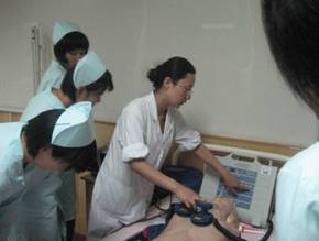 为了进一步提高护理学员专业英语的水平,临床护理教研室在本学期《急救护理学》实践课教学中采用双语讲授的教学方式。教员通过英文板书,英语讲授并结合现场示范,向学员介绍了心电图描记以及电除颤技术的操作方法。通过此种教学方式激发了学员学习专业英语的热情,同时也促进了教员口语表达能力的提升,受到师生的一致认可。