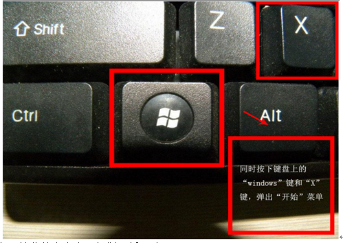 1.同时按下键盘上的“windows”键和“X”键,桌面上会弹出开始菜单。