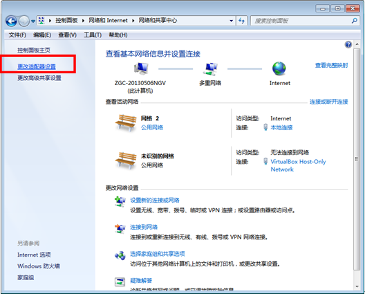 10.回到“网络与共享中心”界面,再次打开“更改适配器设置”。