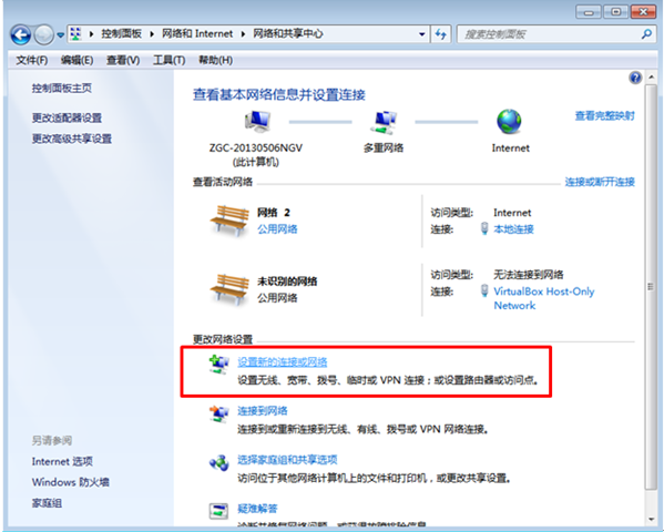 4.在弹出的页面上鼠标左键单击“设置新的连接或网络”。