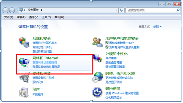 3.在“网络和Internet”选项中左键点击“查看网络状态和任务”。