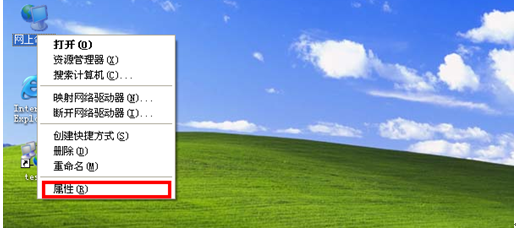 1. 在桌面“网上邻居”的图标上点击鼠标右键。左键点击“属性”选项。