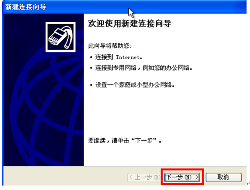 4.选择“连接到Internet”,鼠标左键点击“下一步”。