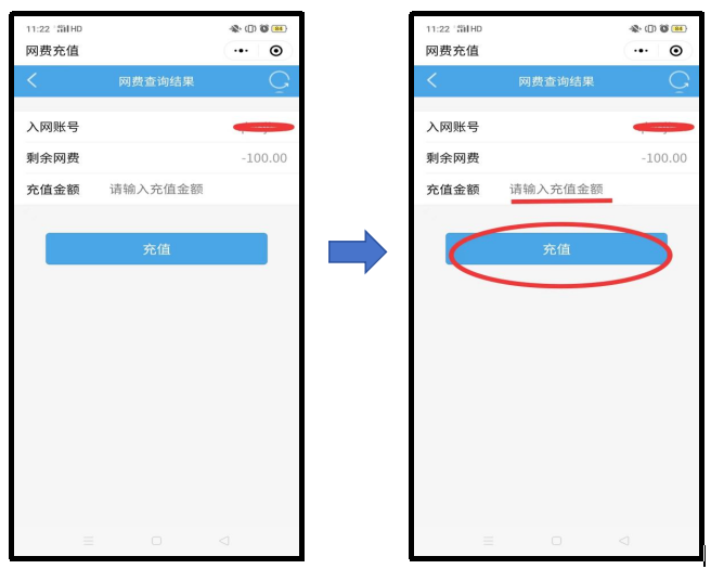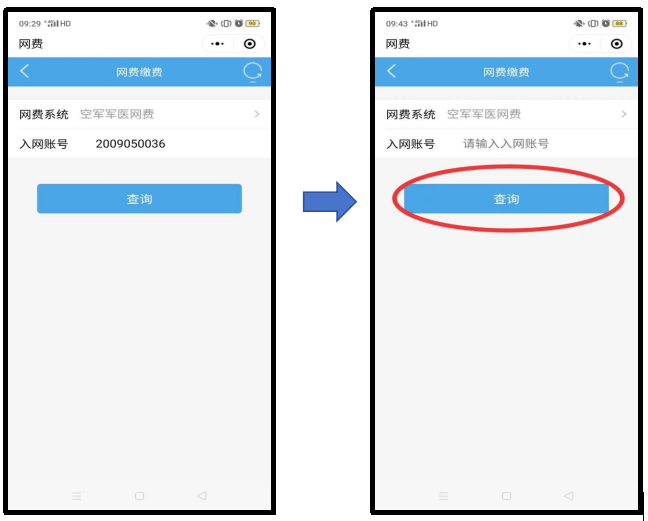 2.删除默认显示的账号,输入用户的入网账号,点击查询。