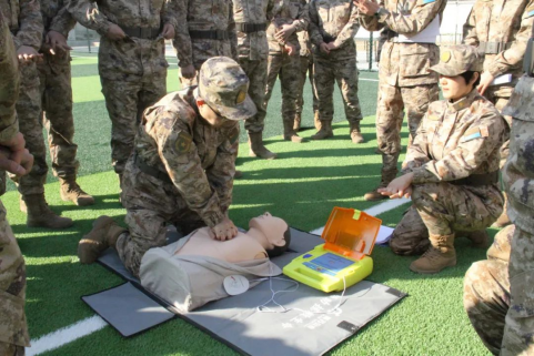 教员通过理论讲解与现场演示结合的方式,生动形象地向官兵们讲解了心肺复苏术联合AED、海姆立克急救术、止血包扎等急救技能的操作要点及注意事项,帮助官兵们进一步掌握急救原理与技能。
