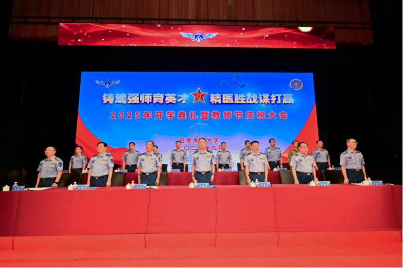 铸魂强师育英才,精医胜战谋打赢。9月10日是第41个教师节,大学在长乐大礼堂举行2025年开学典礼暨教师节庆祝大会,空军后勤部领导、大学张思兵校长、王大公政委、王东光副校长、杨春风副政委、教员代表及2025级全体新学员参加。