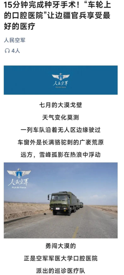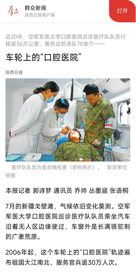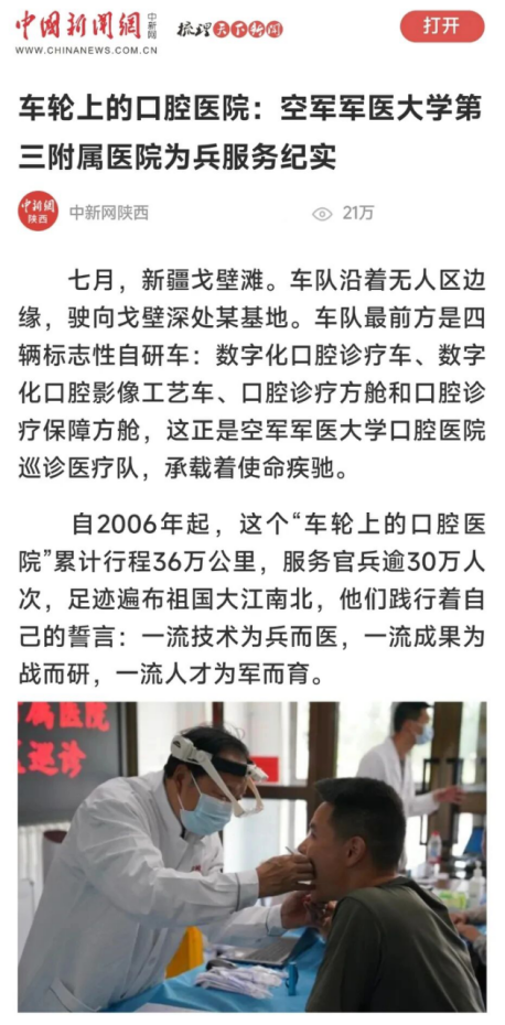 组建以来,这支“车轮上的口腔医院”已累计行程36万公里,服务官兵逾30万人次。他们用实际行动践行铁血誓言:一流成果为战而研,一流人才为军而育。