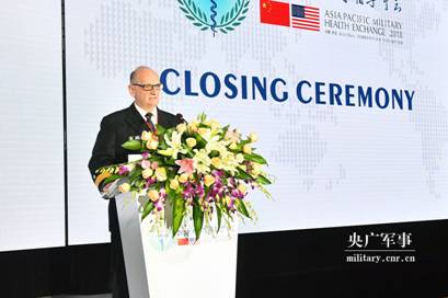 中央军委后勤保障部卫生局副局长刘殿荣少将在闭幕式致辞中讲到,亚太地区是全球人口最多、发展最快、最具活力、最有潜力的地区,也是世界上经济发展不平衡、生态环境恶化严重、自然灾害频发的地区之一,健康威胁与挑战影响跨越国界,需要地区各国密切沟通、加强协调、通力合作。军队卫勤作为各国卫生系统的重要组成部分,加强区域合作,有利于各国军队卫勤自身的发展,有利于促进世界的和平与发展。中国军队卫勤愿与亚太地区和世界各国军队卫勤进行更深层次、更宽领域上的交流合作,为提升亚太地区军事医学整体实力和水平,促进和维护全球健康发挥积极的作用。