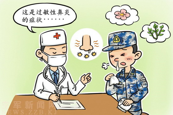 在过敏性鼻炎的主要症状里,排在第一位的是打喷嚏,一般呈阵发性,每次都会打上好几个甚至十几个喷嚏,再就是清水样的鼻涕,除此之外,还有鼻塞和鼻痒的症状。鼻塞的程度和轻重会各不相同,有间歇性或持续性,一侧、两侧或两侧交替。鼻塞会影响官兵睡眠,继而影响第二天的体力和精神,鼻痒、眼痒的同时往往伴有流泪、结膜充血和灼热感,多见于花粉过敏者。少数过敏性鼻炎患者还有嗅觉减退及头痛症状。上述每一个症状都会有严重影响日常训练,造成非战斗减员,严重者还可发展成为哮喘,甚至有生命危险。