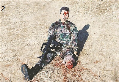 突然,一个“伤员”被炸飞到离张杰不到半米远的地方。“伤员”发出求救的惨叫,身体在不断发抖,被“炸断”的大腿血肉模糊、白骨暴露,动脉血喷涌而出。