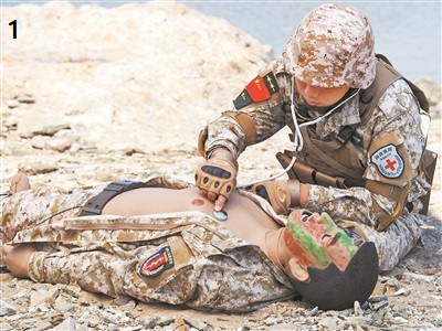 图1:在前不久的一次演习中,军医对“勇士”进行伤情诊断。(刘朝群摄)