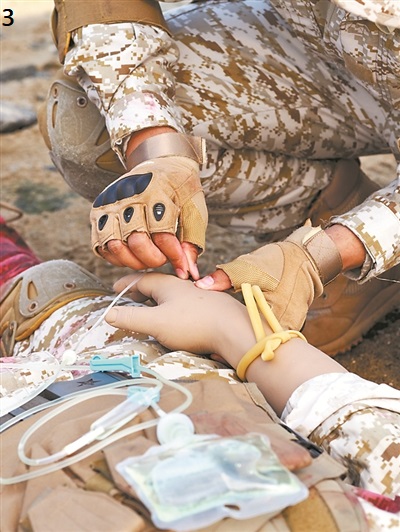 图3:军医对受伤的“勇士”进行静脉注射。(刘朝群摄)