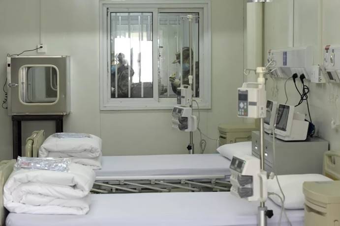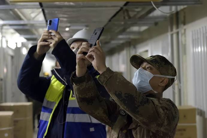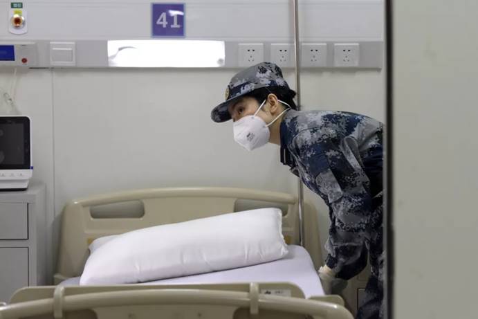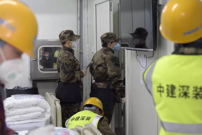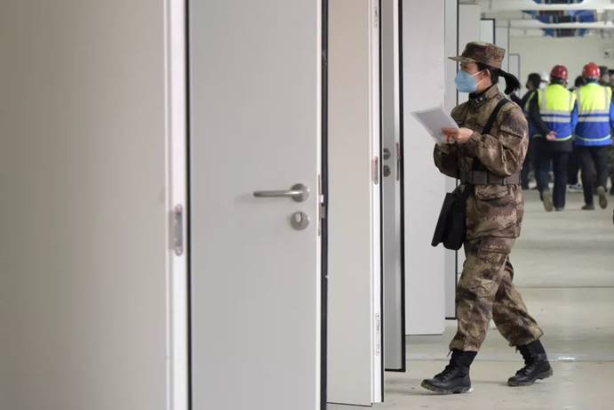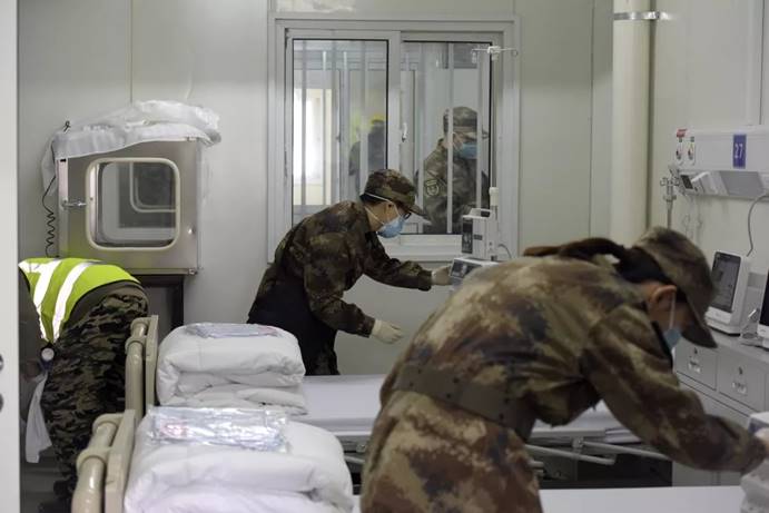 2月3日,军队支援湖北医疗队队员进入武汉火神山医院病房完成各项准备工作。中国军网记者范显海 摄