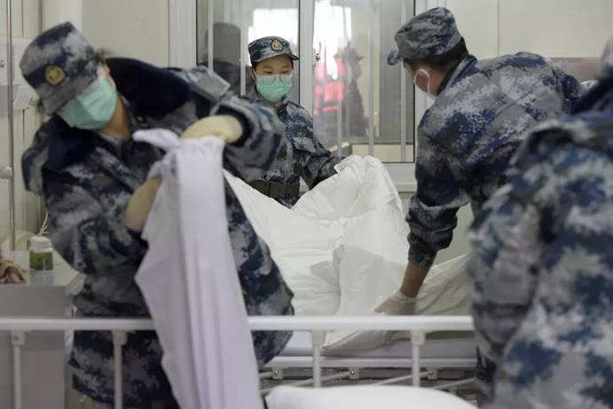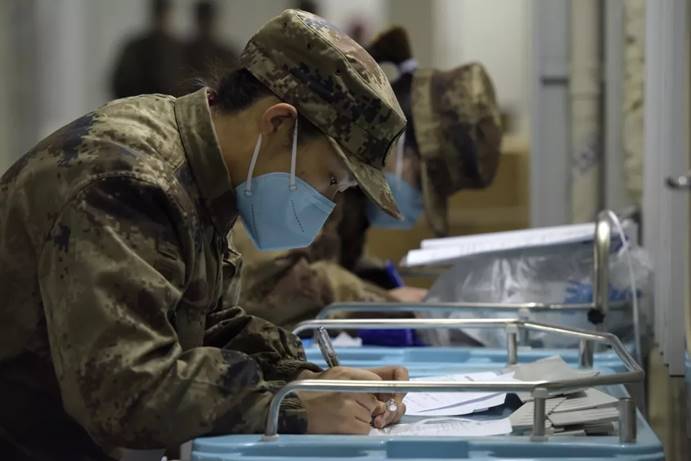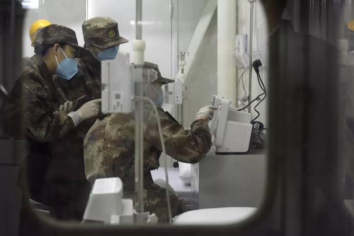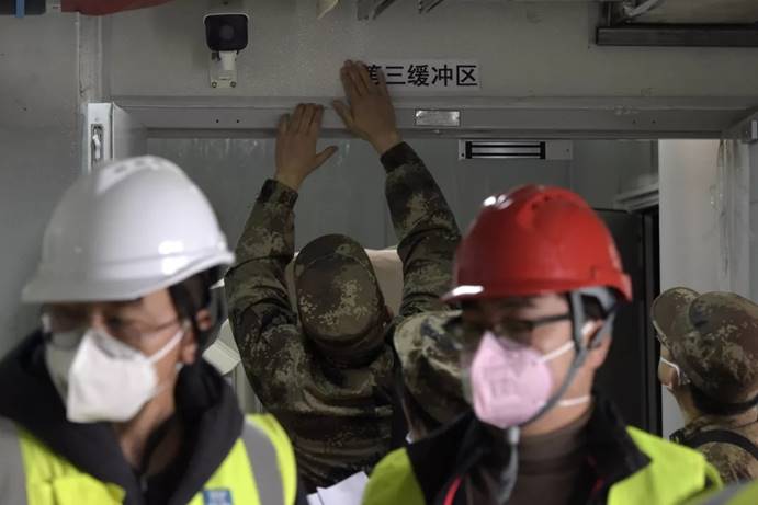 2月3日,军队支援湖北医疗队队员进入武汉火神山医院病房完成各项准备工作。中国军网记者范显海摄