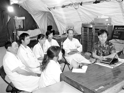 右下图为宋立强(右一)参加2008年汶川抗震救灾。李翔摄