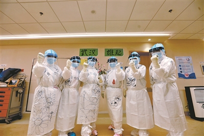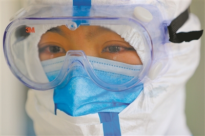 13岁的西安双胞胎姐妹惠馨荻、惠馨乐把“你”——她们的妈妈借给了武汉。结束一天繁重的救治任务后,摘掉口罩和护目镜那一刻,军队支援湖北医疗队护士长郭玮的脸庞勒出了压痕。