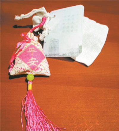 2月19日,第二批军队支援湖北医疗队抵达武汉,与他们一起到来的还有一份来自西安的别致礼物——坠有粉色流苏和绿色彩珠的平安药囊,系着一张卡片,上印一首小诗:军令急赴鄂,相携灭疫毒,药囊为赠别,倚门盼安好。