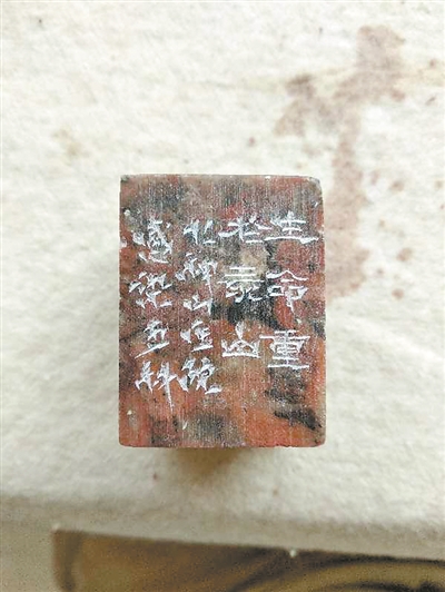 这是一块普通的寿山石,篆刻上“生命重于泰山”,便成一方印章。