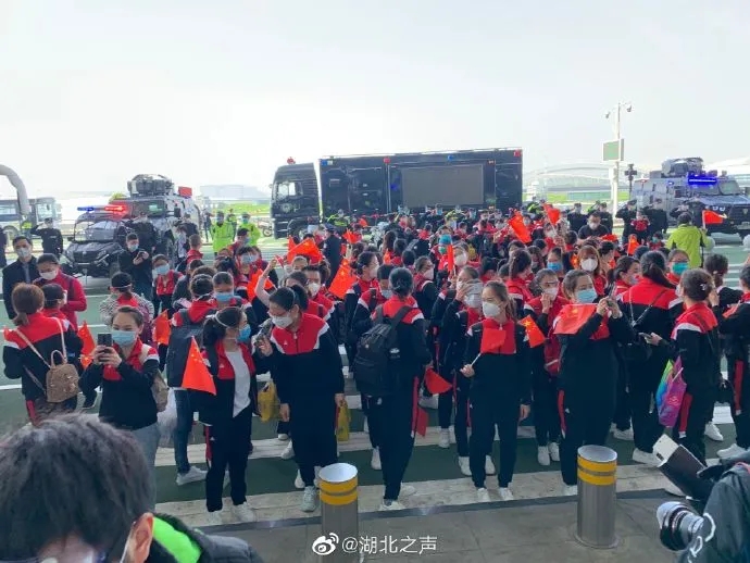今天,海南援鄂医疗队也开始陆续撤离。上午10点20分,医疗队抵达武汉天河机场。现场,志愿者喊着“感谢海南,向您致敬”,与他们告别。