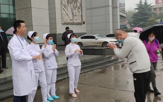 临走时,老陈为郭万刚敬了一个标准的军礼:“能在疫情中遇见你们,是我一辈子的幸运。谢谢你们为我们拼过命,我的兄弟姐妹们,谢谢你们!”